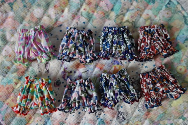 かぼちゃパンツの裾スカラップはミシンで入れた後、一着ずつ切り離しています