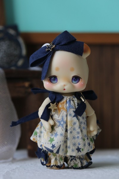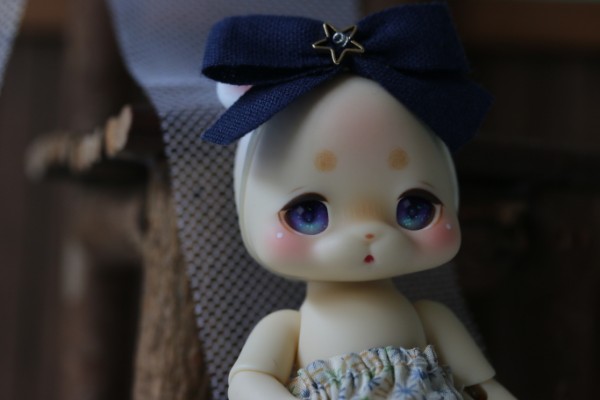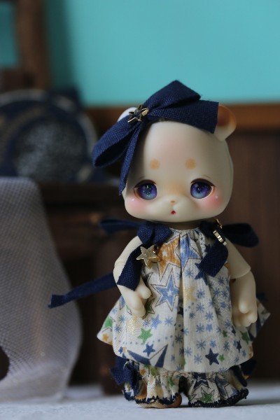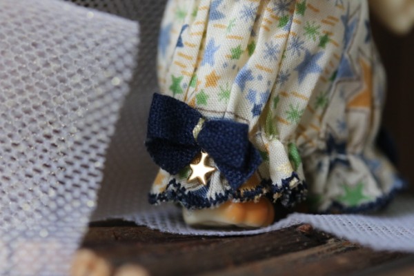頭のリボンは透明のゴムで止めています。先の尖った星のパーツを付けています